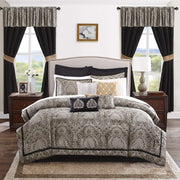 Luxe Set-Satin Elegant Room in a Bag Set - 24 Pcs. with Matching Curtains, Decorative Pillows - Queen / Black