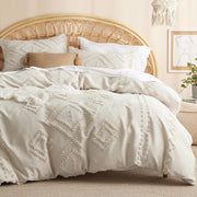 Queen Comforter Set - White Comforter, Boho Tufted Shabby Chic Bedding Comforter Set, 3 Pieces Vintage Farmhouse Bed Set for All Seasons, Fluffy Soft Bedding Set with 2 Pillow Shams
