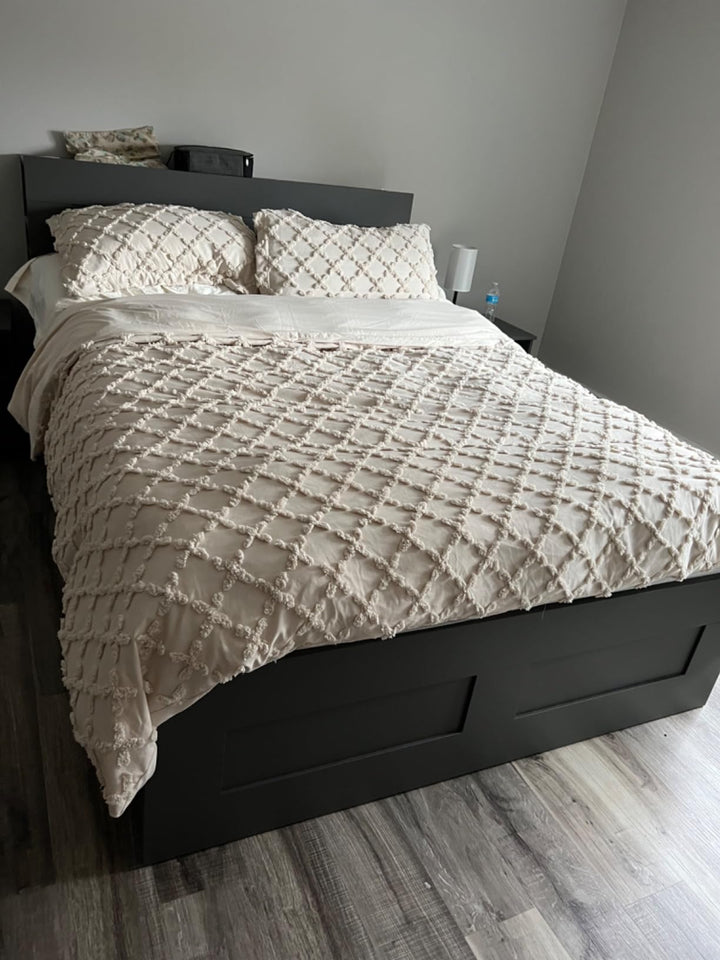 We believe that quality starts with the right materials. That's why we use a variety of high-quality materials to craft our products, each chosen for its comfort, durability, and style. From breathable bamboo and silky-soft lyocell to luxurious Egyptian cotton and cozy microfiber, there’s a perfect fit for every preference. You'll also find options in natural linen, durable polyester, and supportive memory foam. Check the product details for the specific materials used in your selection.